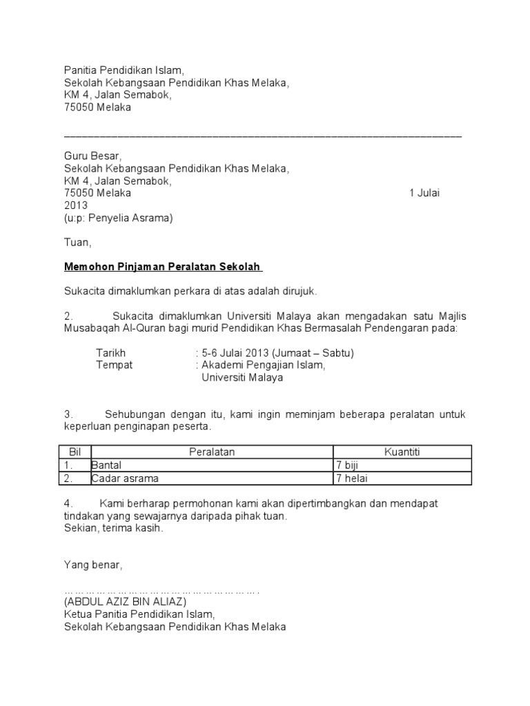 Surat Permohonan Pinjam Peralatan Asrama Pdf